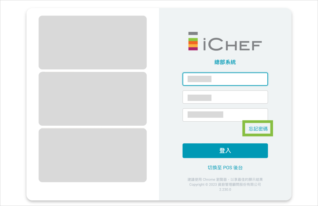➤ 總部登入頁網址:https://login.ichefpos.com/hq