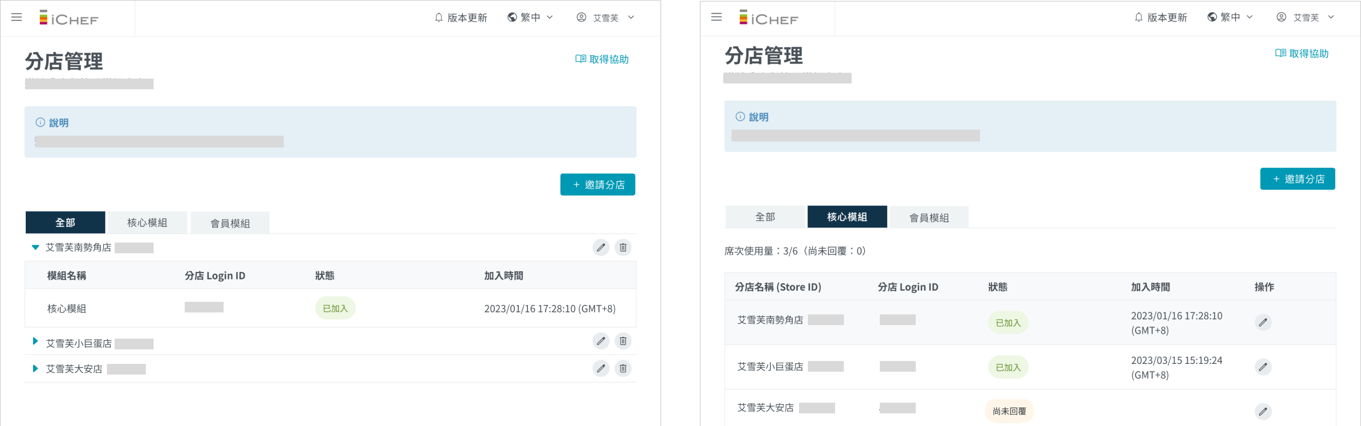 - 尚未回覆:總部已發送邀請給分店,但分店尚未同意加入。