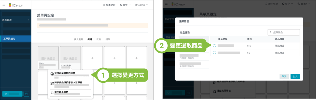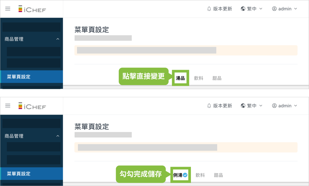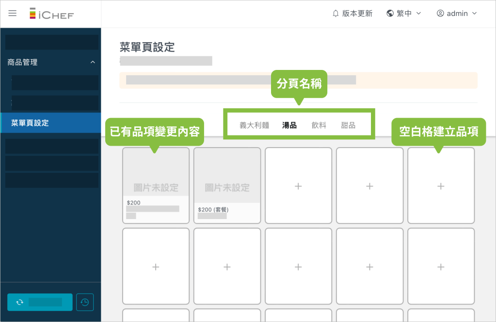 以下將以「菜單頁」設定為主,說明後台的 3 項操作: