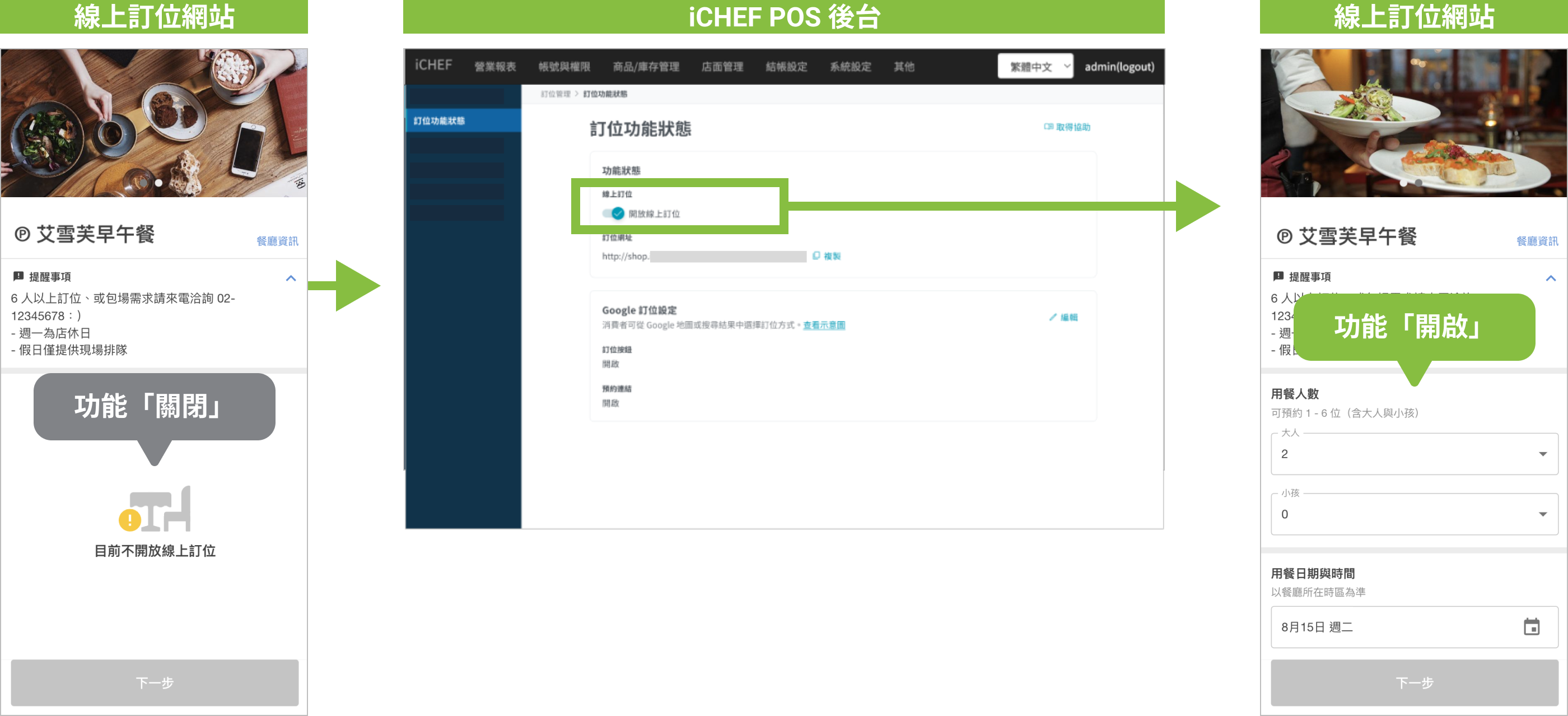➤ 後台位置雲端餐廳 > 訂位管理 > 訂位功能狀態