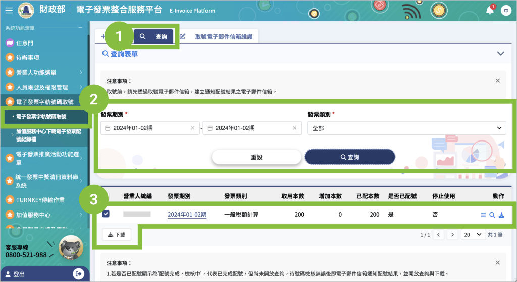 請至 電子發票整合服務平台 以「新統編」登入,下載本期字軌 CSV 檔(完整下載說明請由此查看)。