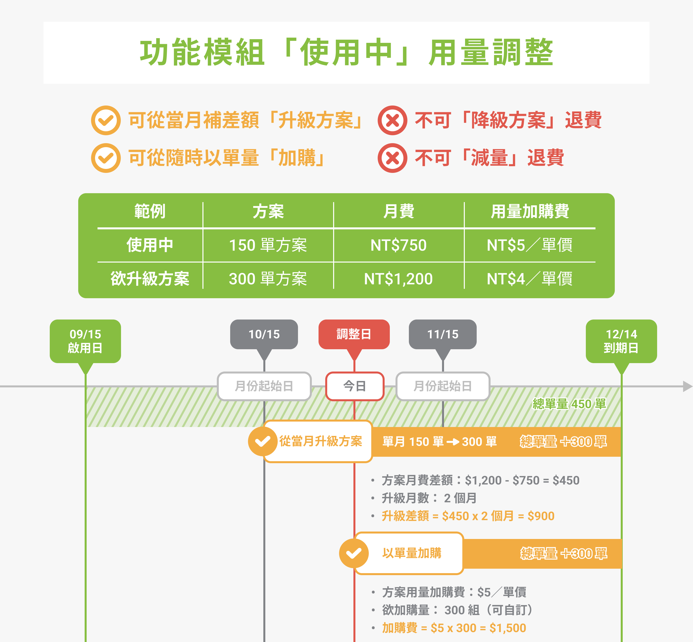 (2)以單量加購=預計增加的「單量 」× 方案的「用量加購費」。
