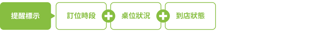 為了讓現場店員可以更快速的反應與判斷桌位與訂位狀況,在 iCHEF POS App 中將提供「訂位時段」、「桌位狀況」、「到店狀態」三類型提醒標示。