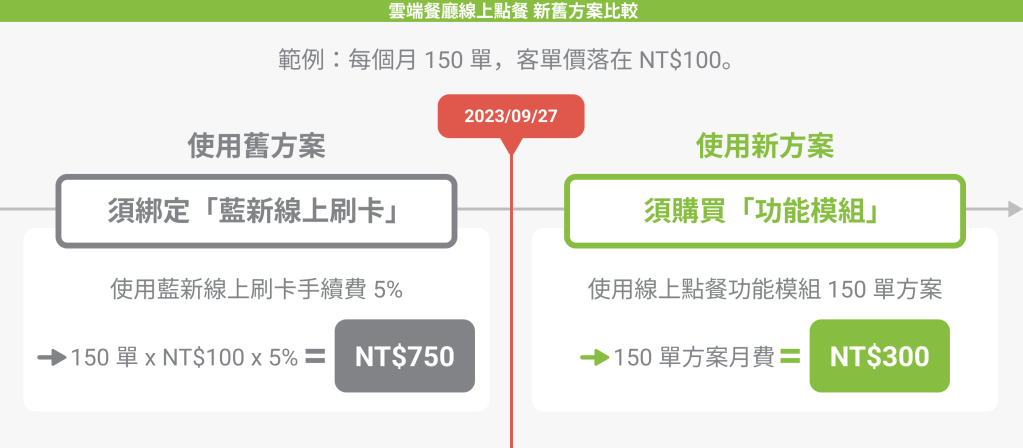 方案轉換期結束日後,未購買新功能模組方案將無法繼續使用線上點餐功能。