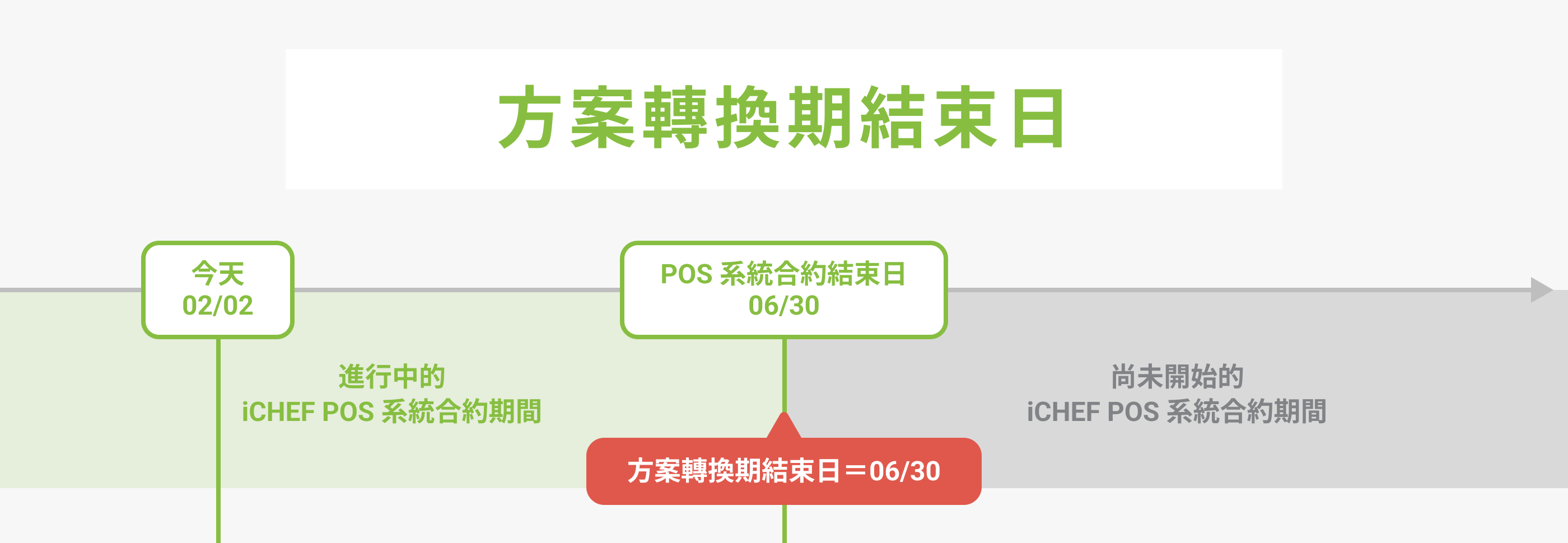 方案轉換期:即日起至「當期 iCHEF POS 系統合約結束日」止