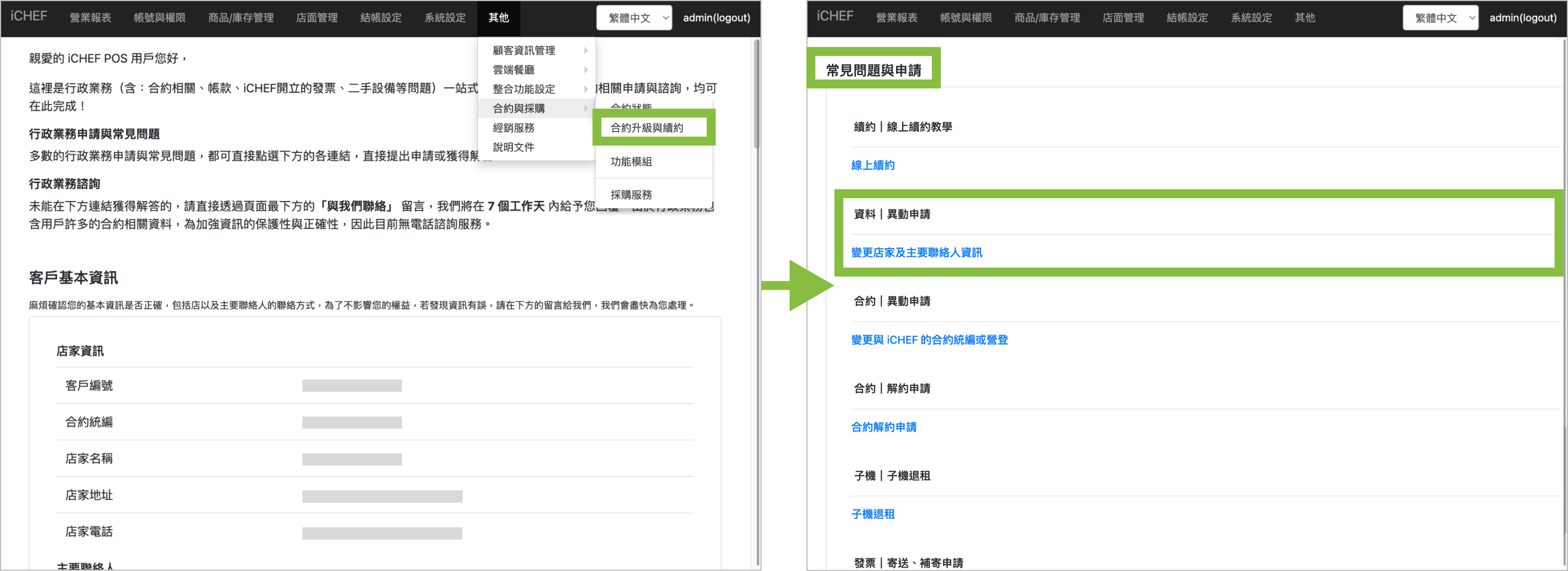 變更主要聯絡人後,iCHEF 所有合約相關通知將改寄送給更新後的聯絡人。請務必確認後再做變更。