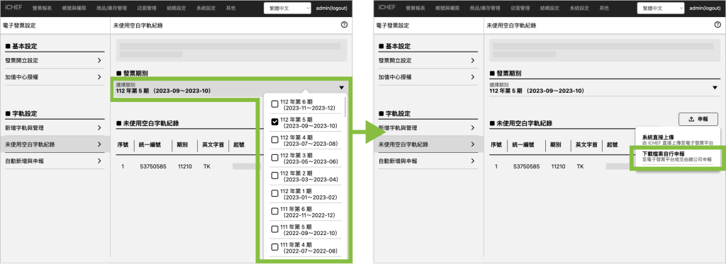 ➤ 後台位置:結帳設定 > 電子發票設定 > 未使用空白字軌紀錄