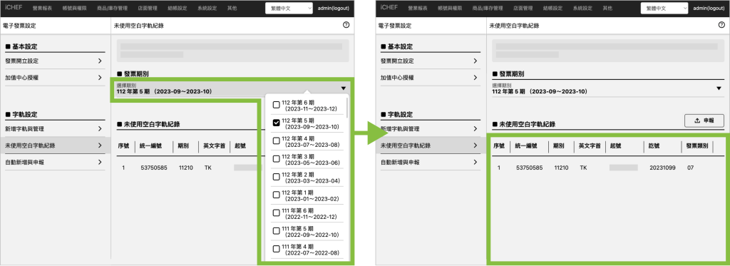 要透過 iCHEF 系統上傳的未使用紀錄,開立的統一編號皆須完成 iCHEF 加值中心授權。