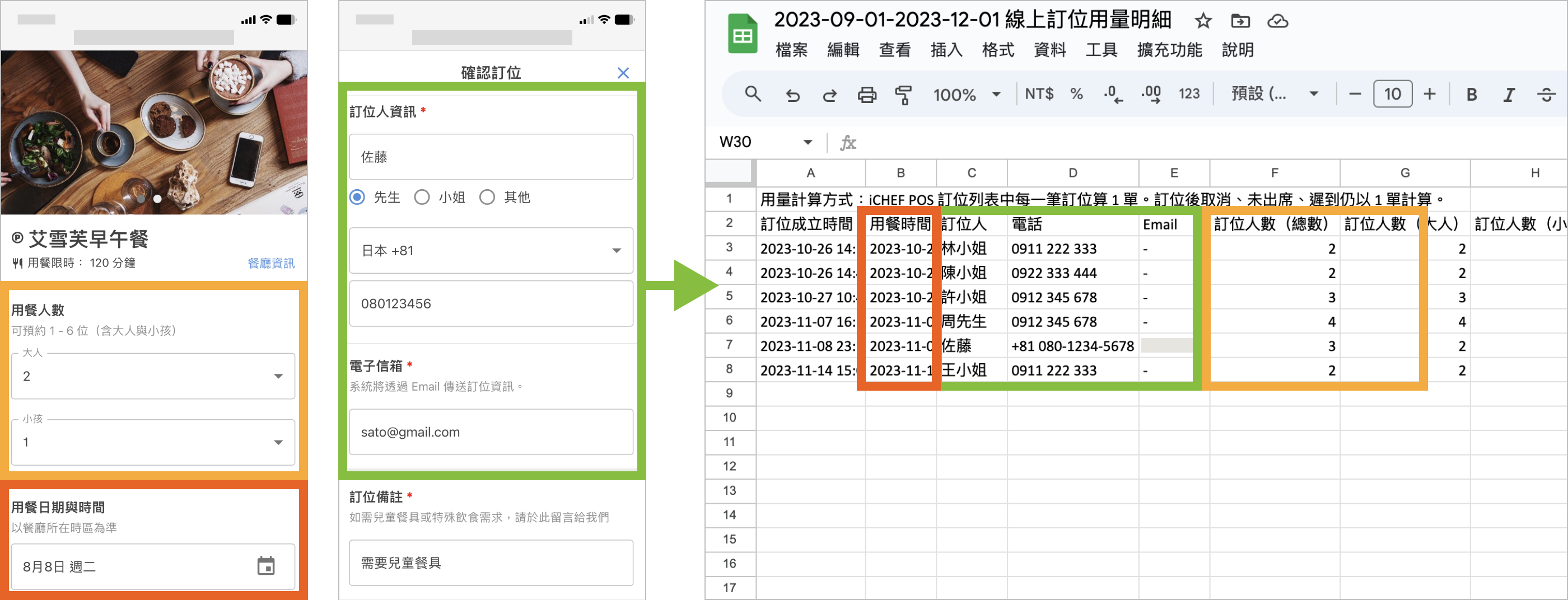 - 訂位人數(總數):消費者選擇的用餐人數加總(大人+小孩)。