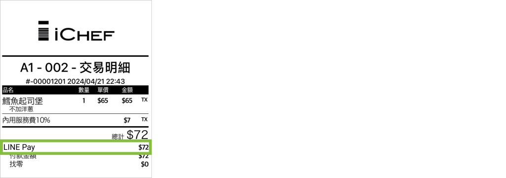 使用 LINE Pay 結帳的訂單,交易明細會顯示「LINE Pay」。