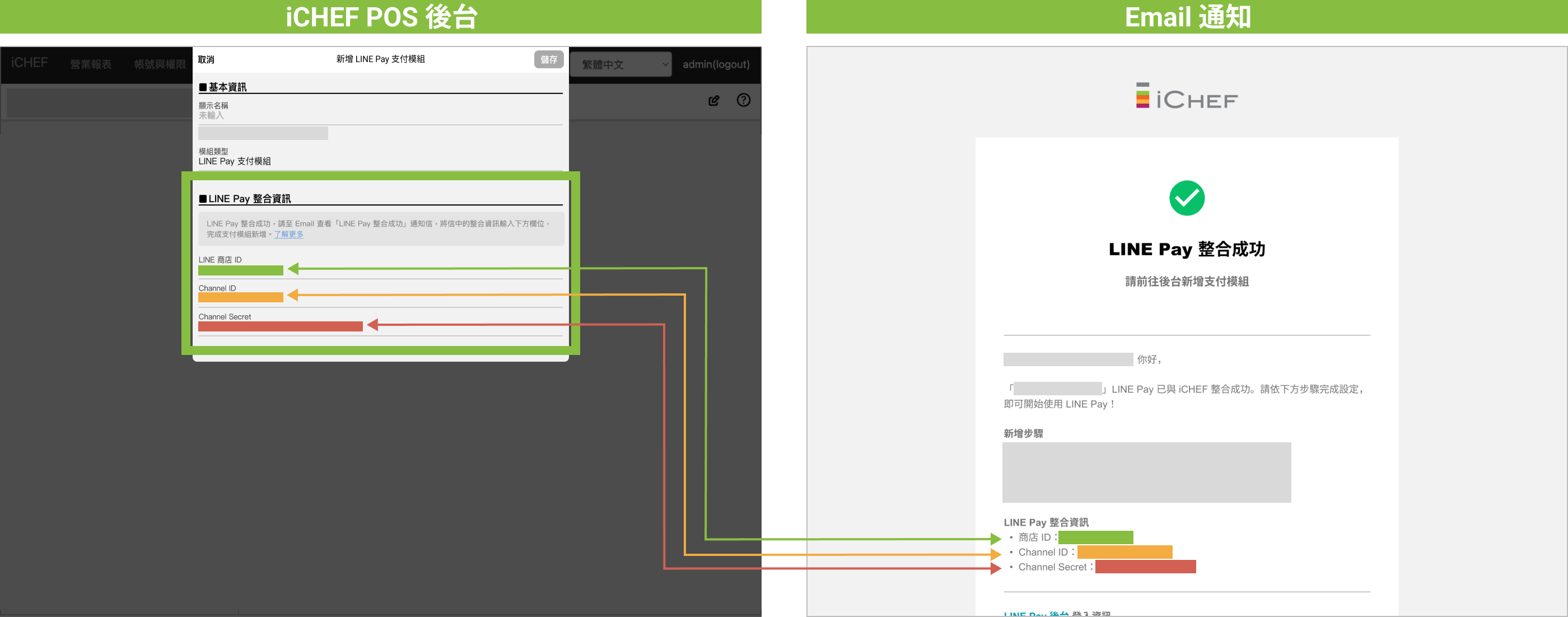 你可以從「LINE Pay 整合成功」通知信所標示的通路,對應回要設定的後台位置。