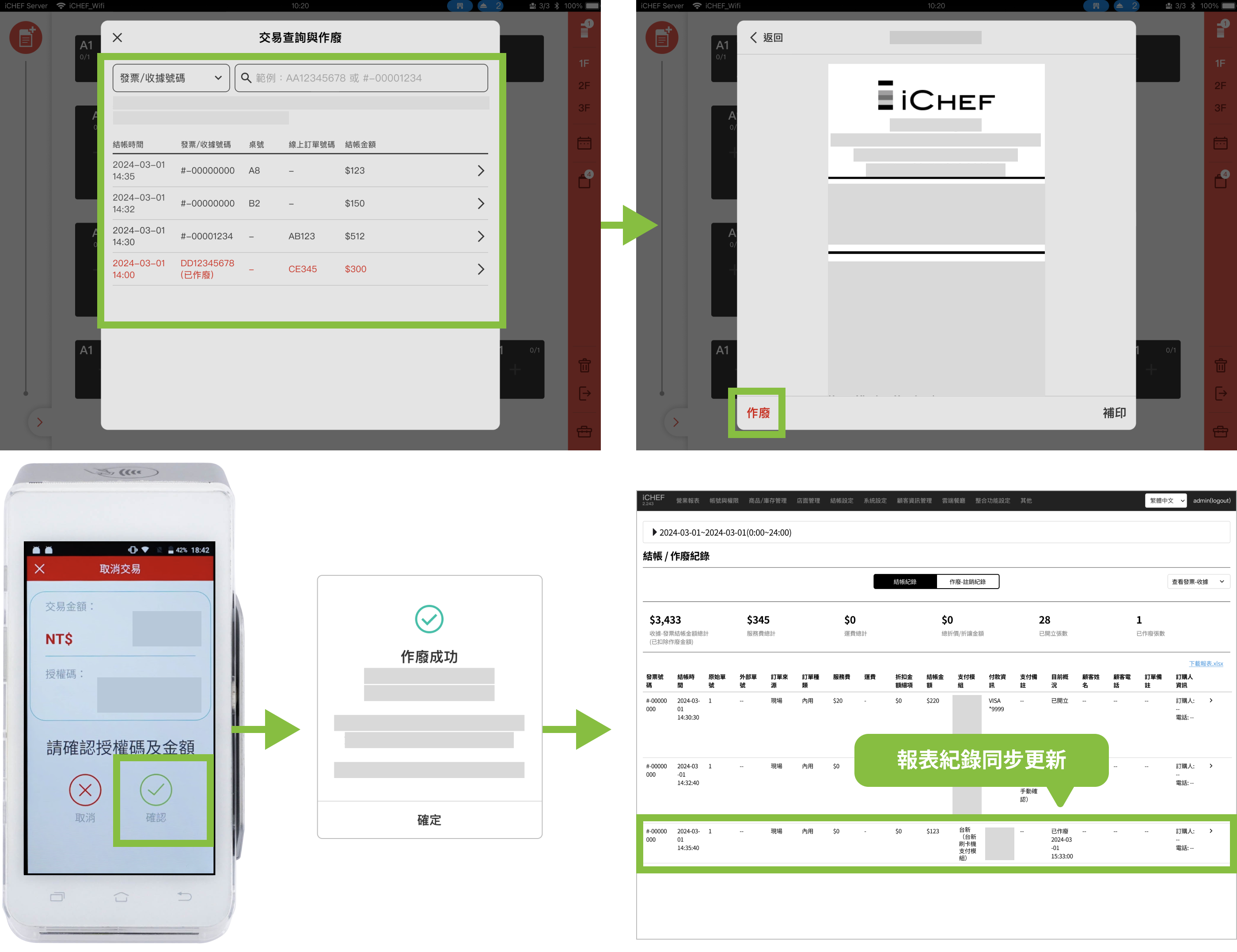 完成後的交易若需要作廢,請準備原始單據後依序操作: