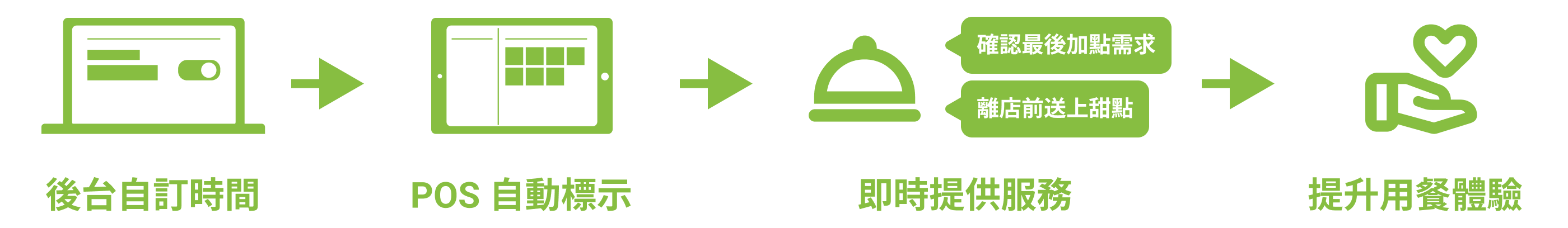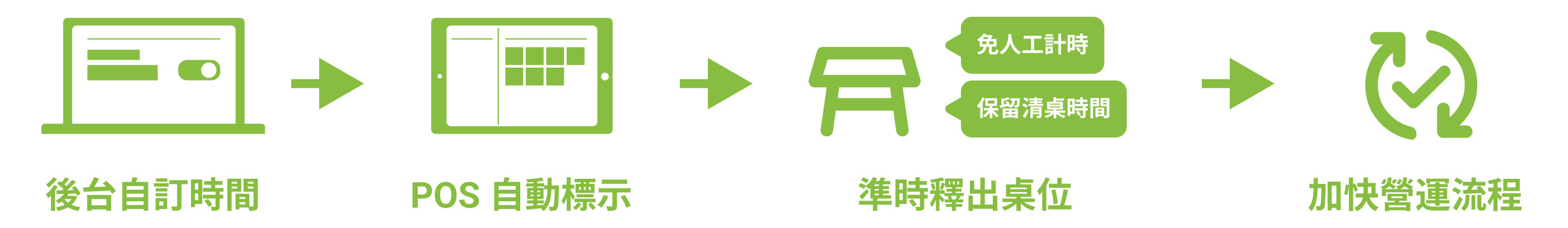 ➜ 準時釋出桌位,讓下一組客人不久候,加快營運流程。