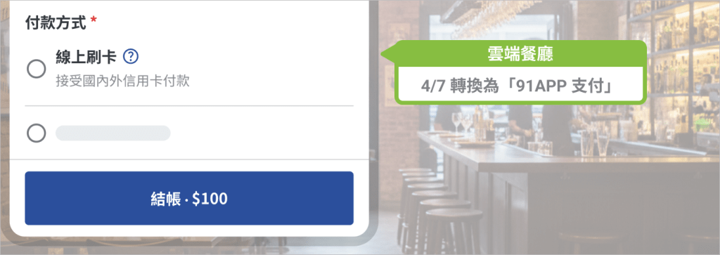 從【2026 年 4 月 7 日】起,iCHEF 的線上刷卡金流將轉換為「91APP 支付」,為您提供更穩定的收款體驗與資安防護。